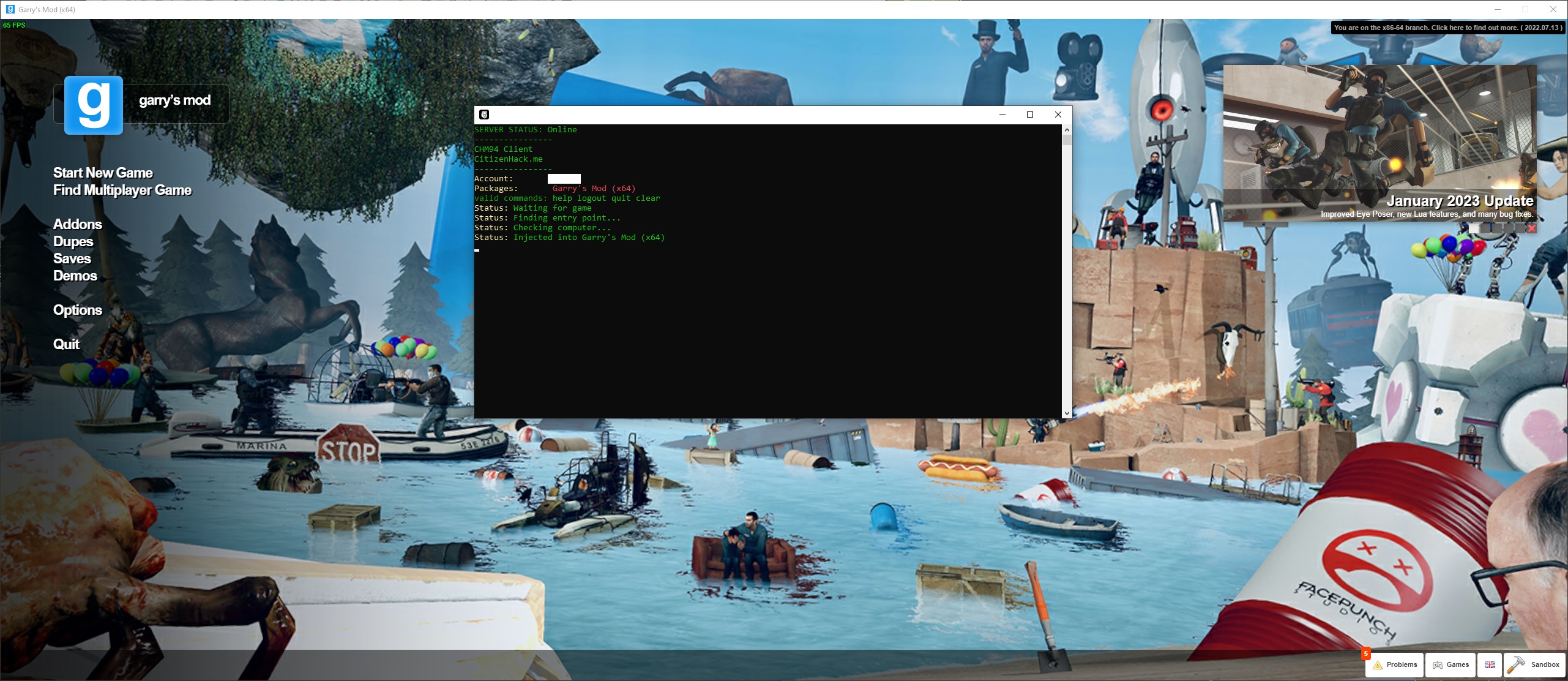 - Launch gmod with x64/build or binaries in garry's mod properties (also window mode is good idea)